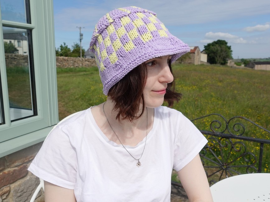 Designer’s WebsiteCheckered Knitted Bucket Hat – Ribblr