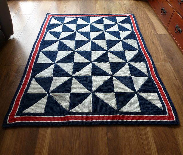 Featured here with a nautical design, this enjoyable knit is a great foundation for you to explore your creative side. Worked up using DK weight cotton yarn, it’s assembled using a number of individual knitted squares depending on the size you need. You can do 2×2 squares for a patchwork baby blanket, or 4×4 squares for a full-sized throw.